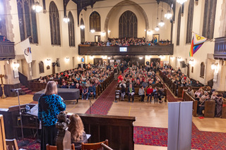 Demonstrating the power of organized people, Calgary Alliance for the Common Good (Calgary Alliance) packed Knox United Methodist Church with 600 people for its 2025 Mayoral Forum.